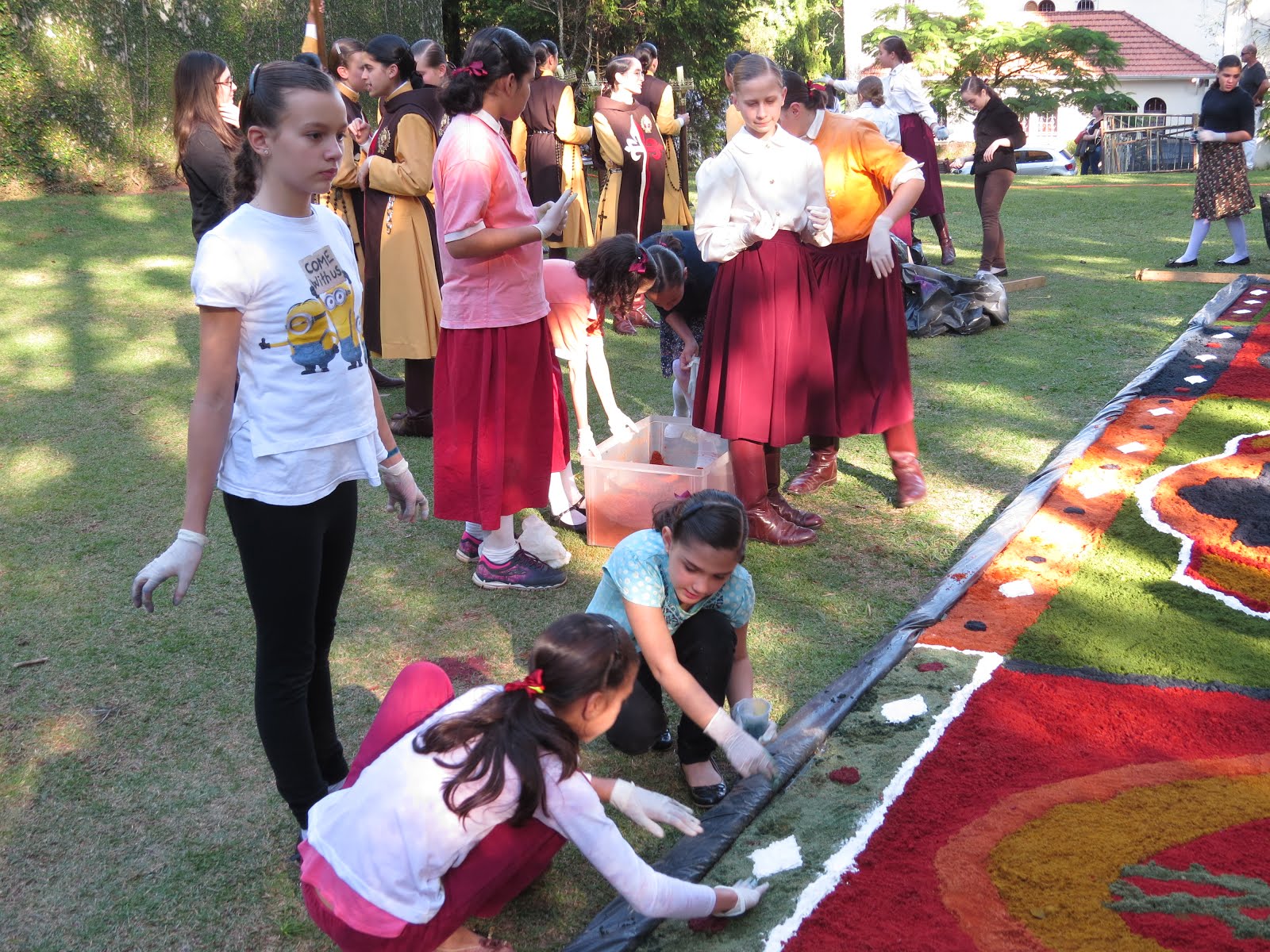 As jovens participantes do Projeto Futuro e Vida, cheias de entusiasmo em um agradável convívio ajudaram na elaboração de bonitos tapetes para a precisão com o Santíssimo Sacramento; além de terem aprofundado sua devoção ao Sagrado Coração de Jesus em diversas reuniões e apresentações teatrais vendo assim o quanto Ele enche de Júbilo e de satisfação espiritual as almas que Lhe são devotas, os corações que se abrem a sua bondade infinita.